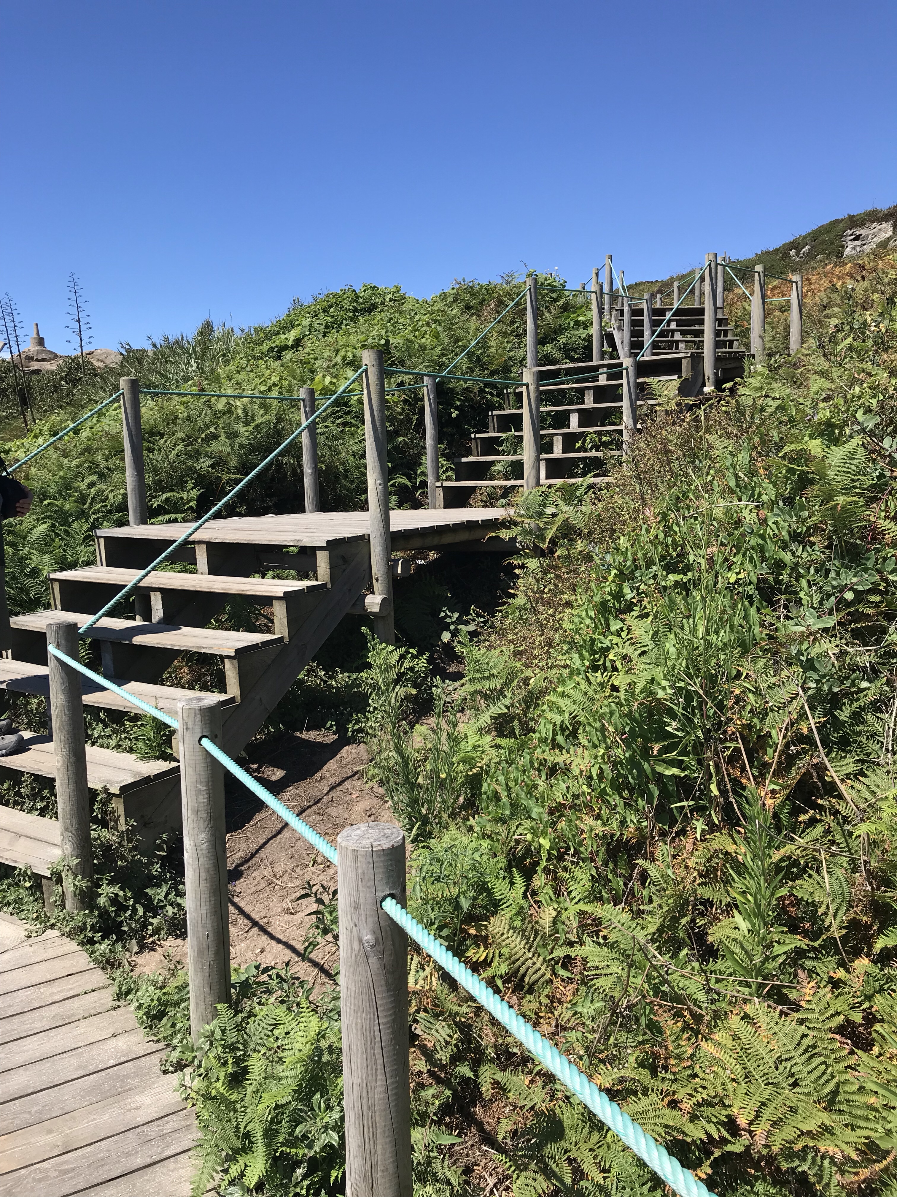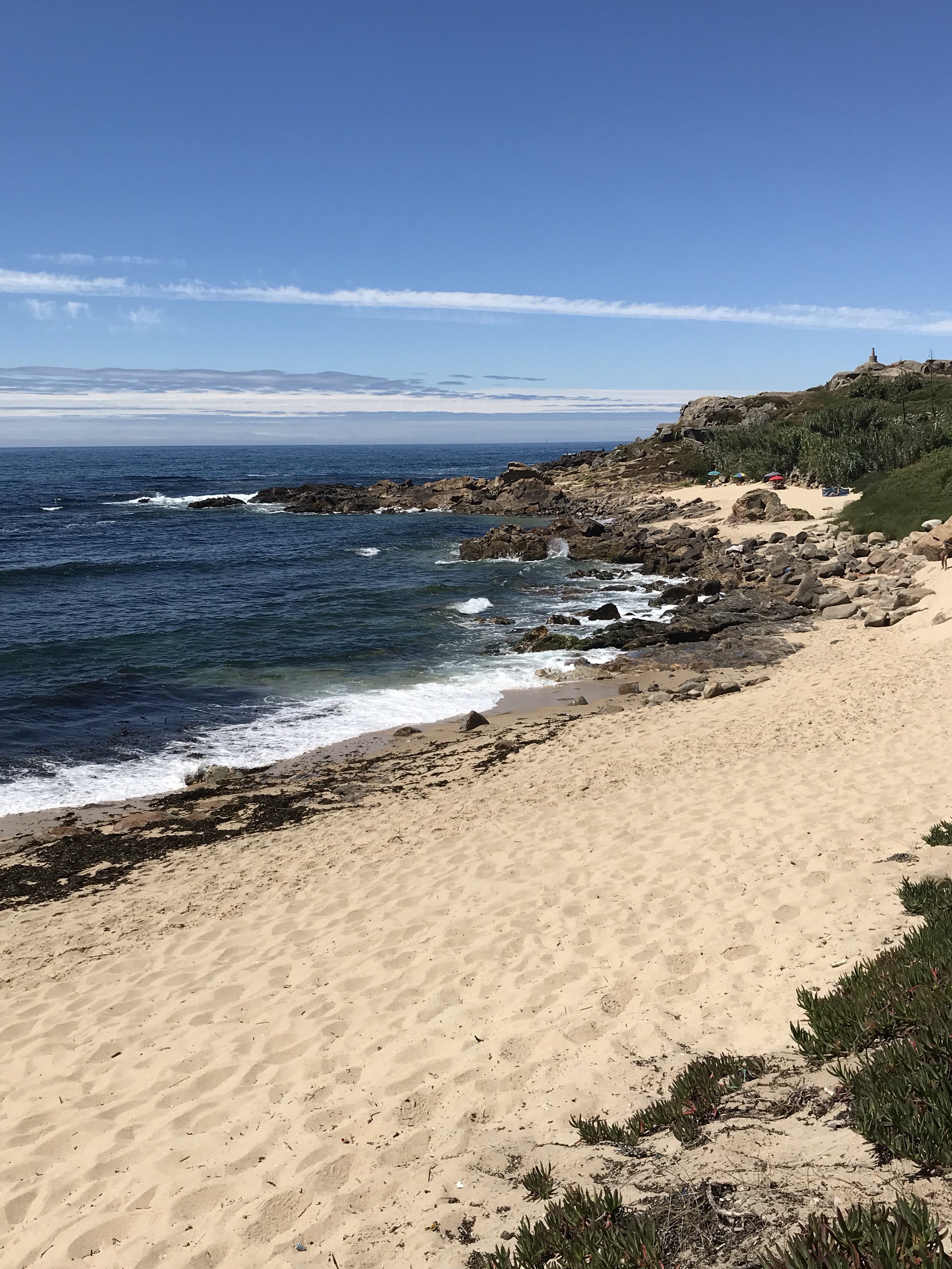 Strolling along the ocean on a gorgeous sunny day, listening to the waves as the wind caresses your hair….yes, that is why we are walking the Coastal Route. That and the perfectly grilled sea bass we had for lunch today!
