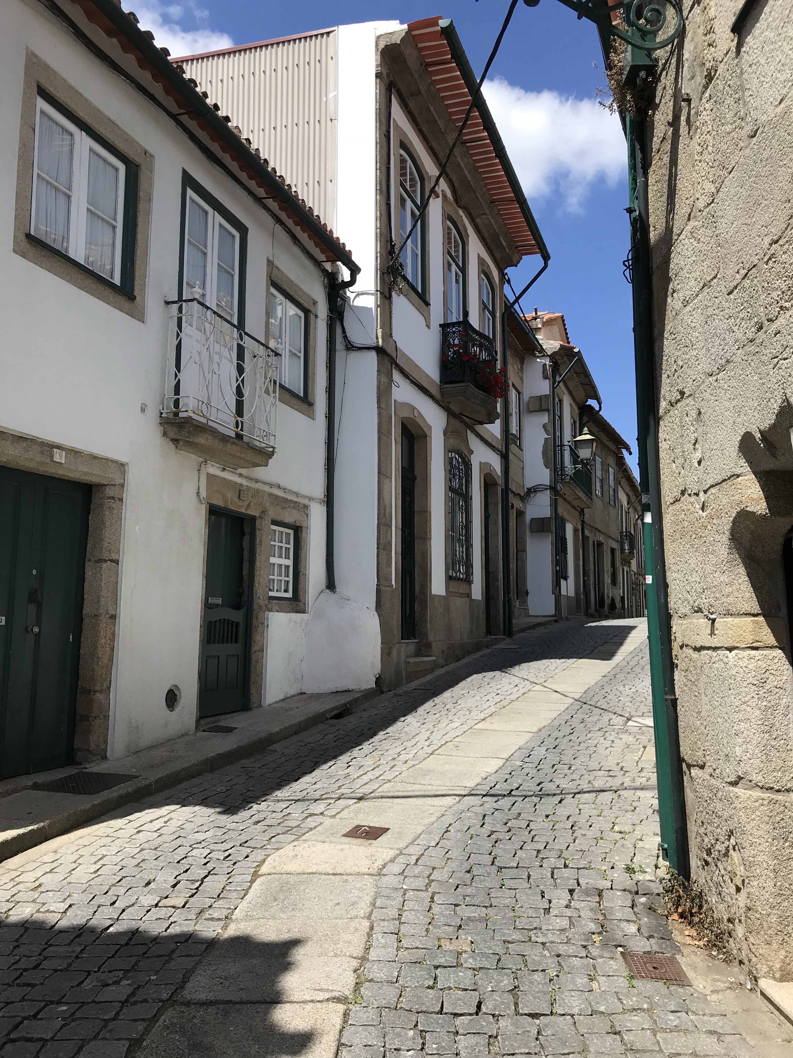 Since there was hardly any traffic, we’d walk along the center line, and little old ladies in the doorways would tell us to keep walking straight, wishing us a Bom Caminho!