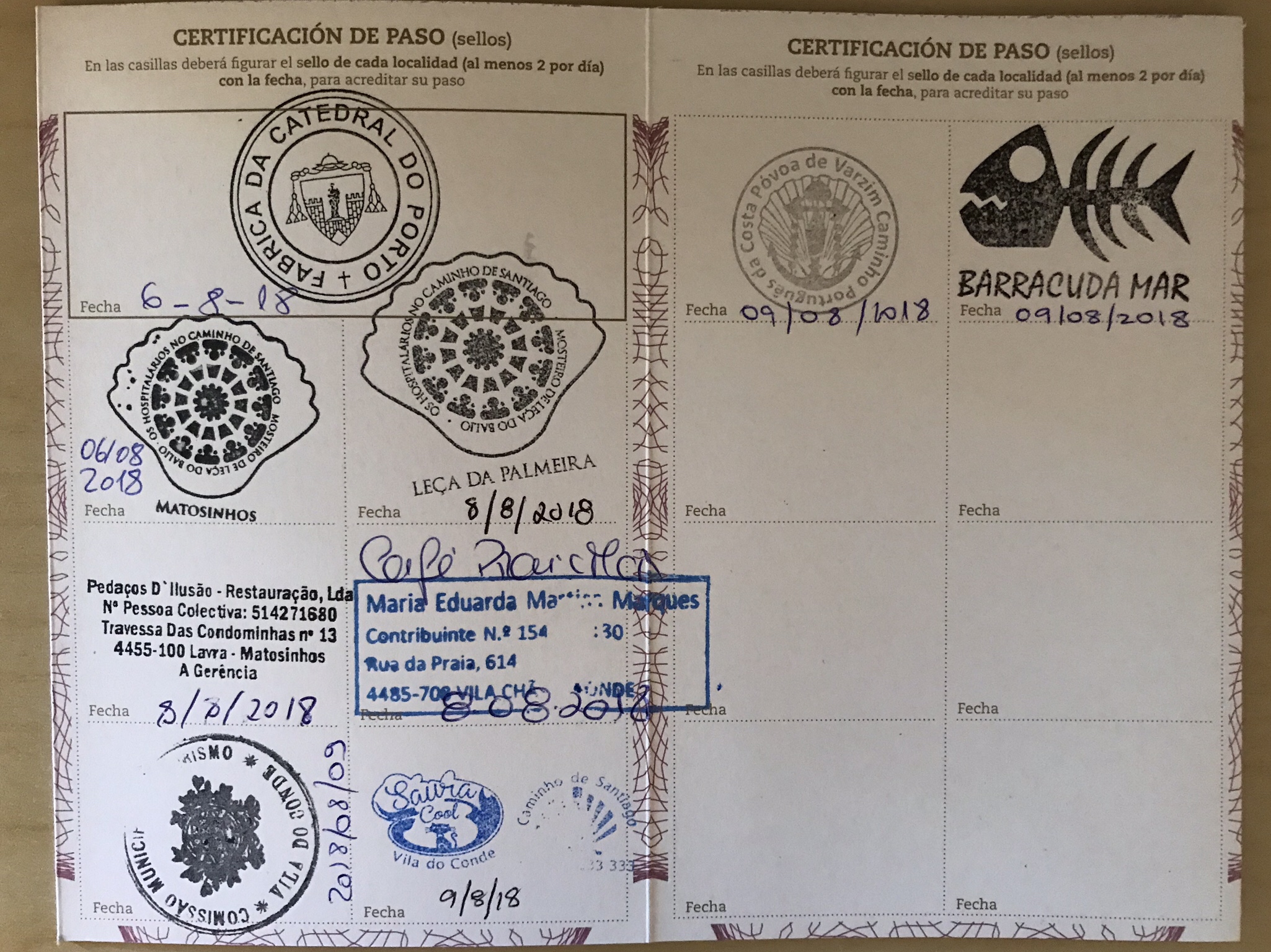 Love the last stamp of the day at a fish restaurant in A Ver o Mar where we stopped for an espresso.