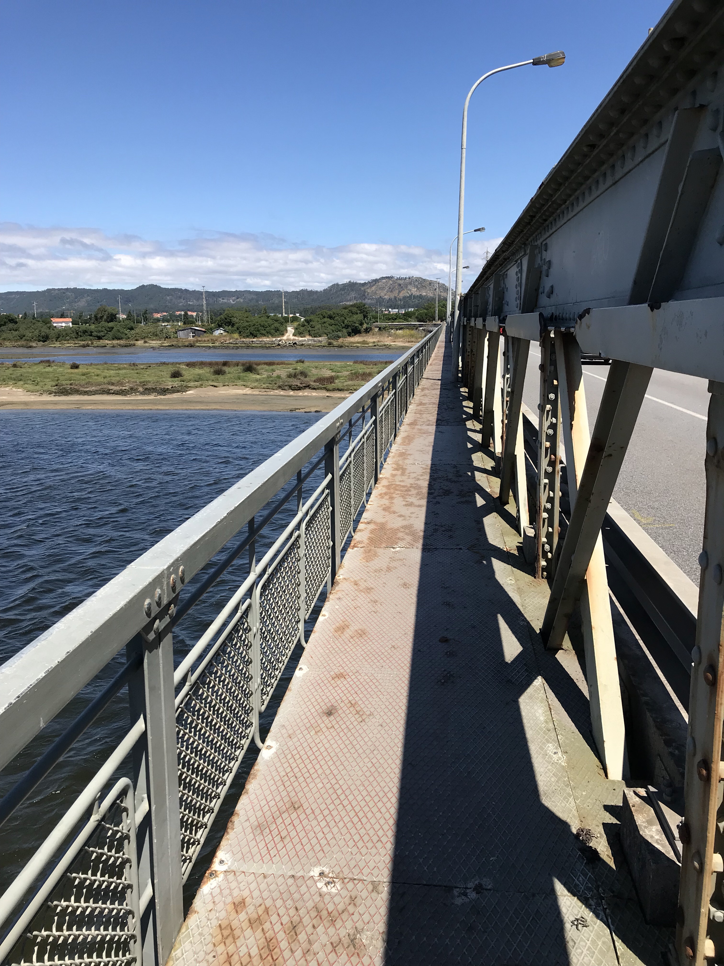 Catwalk along the bridge over the Cávado river in Fāo near Esposende. The cast iron bridge was originally built in 1892 then renovated in 2005.
