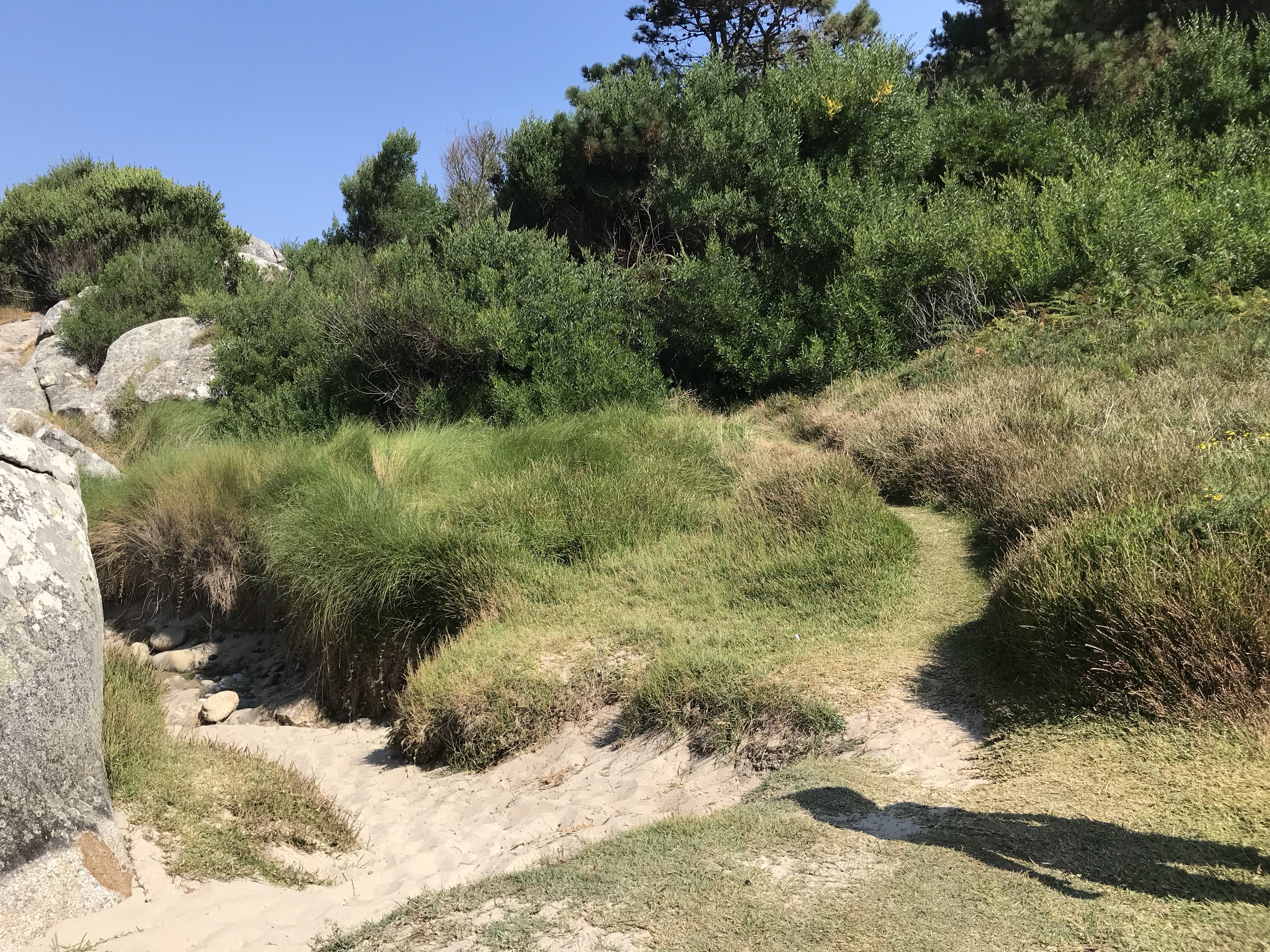 The path clambered over some boulders and through coastal vegetation…