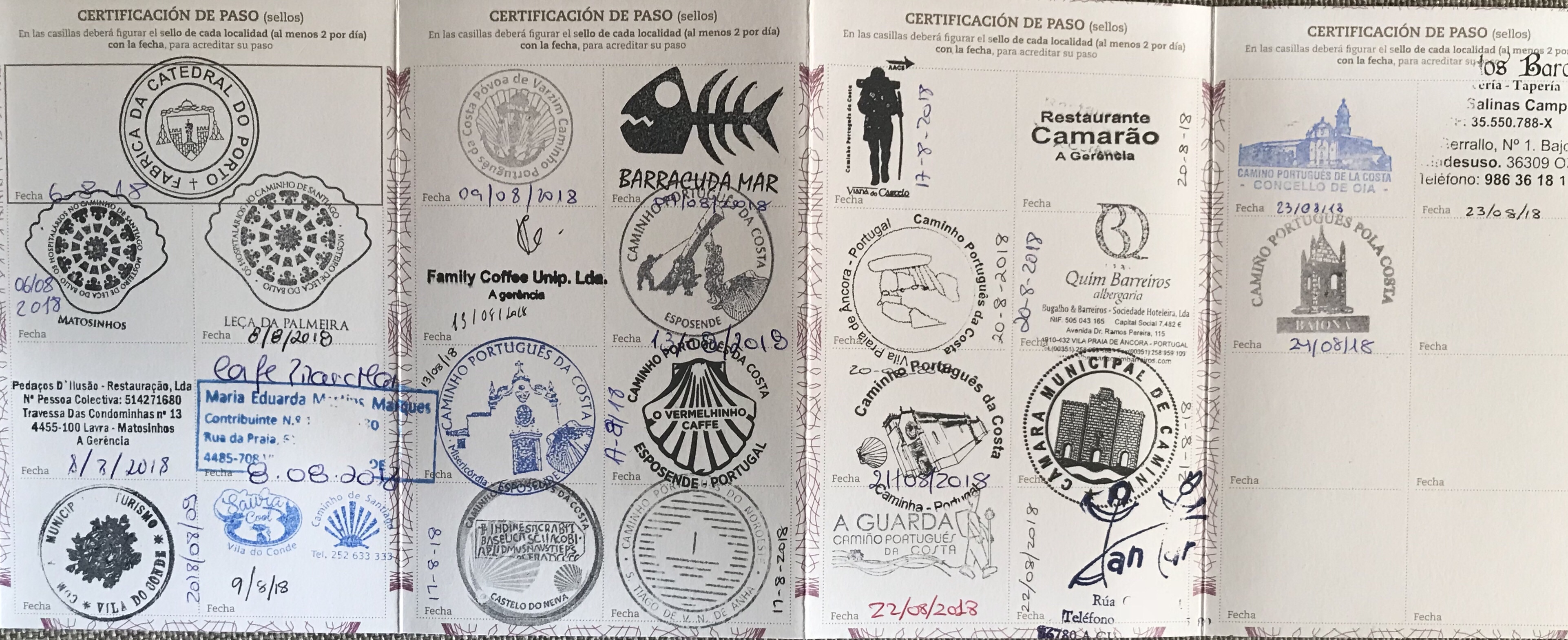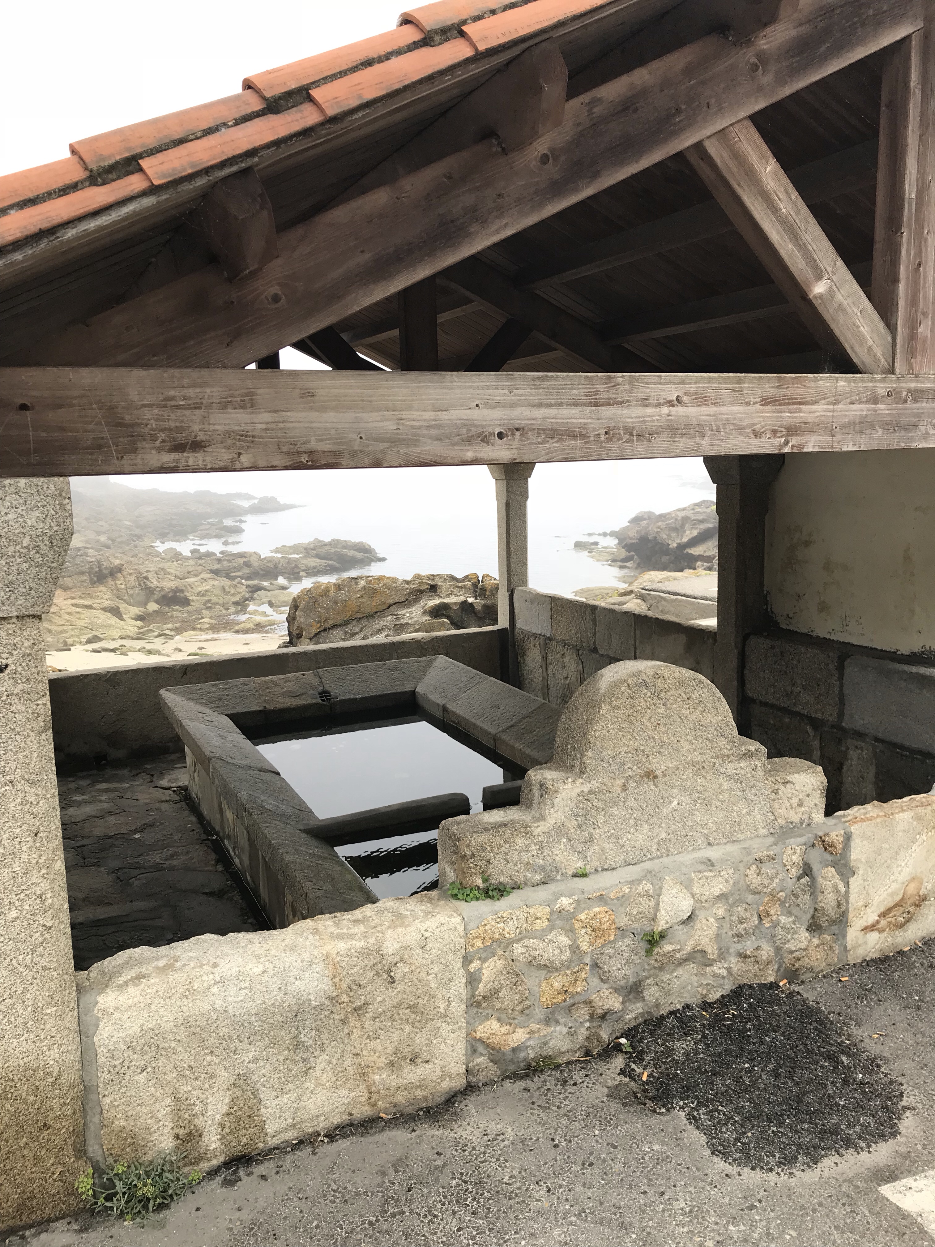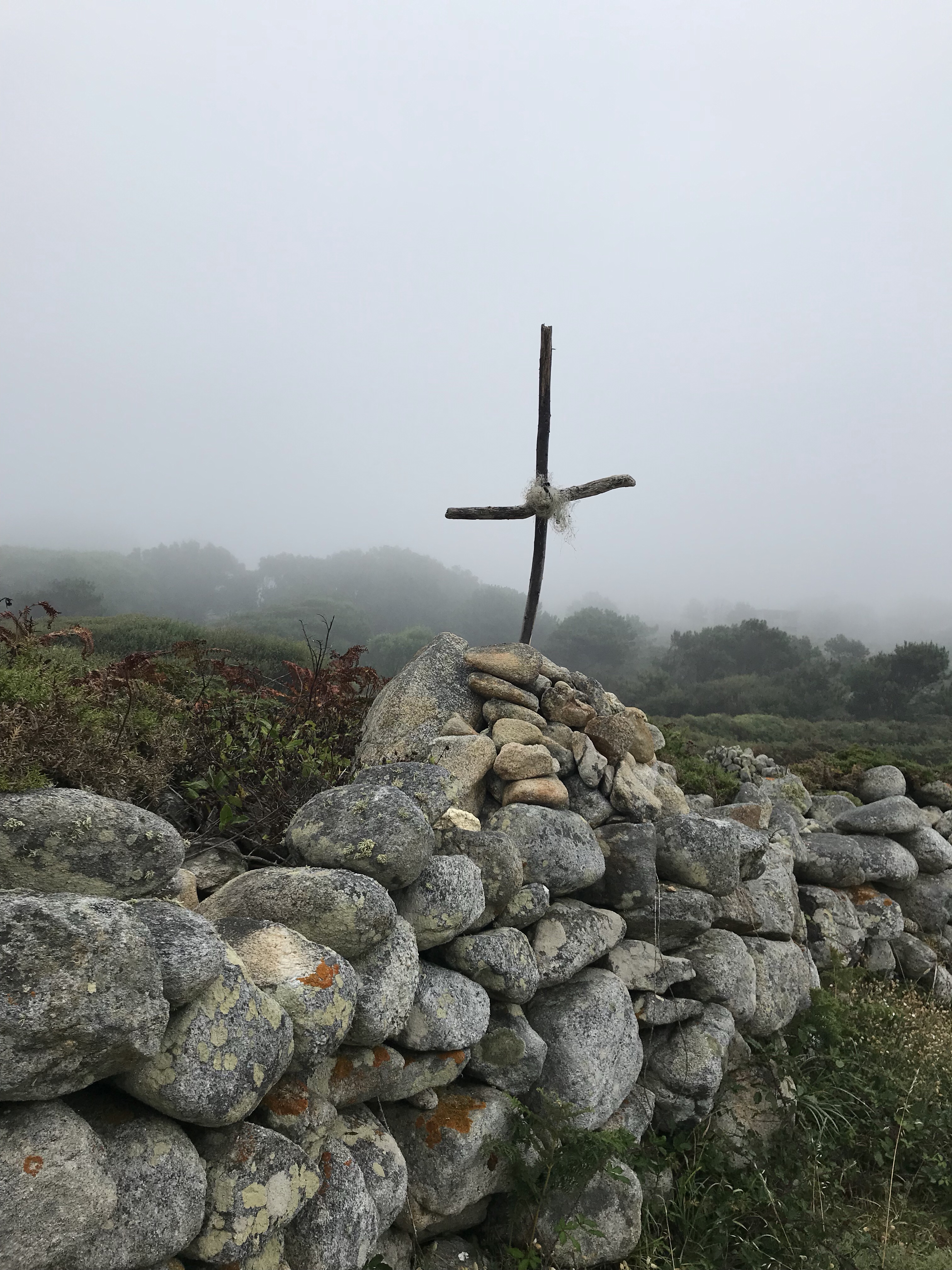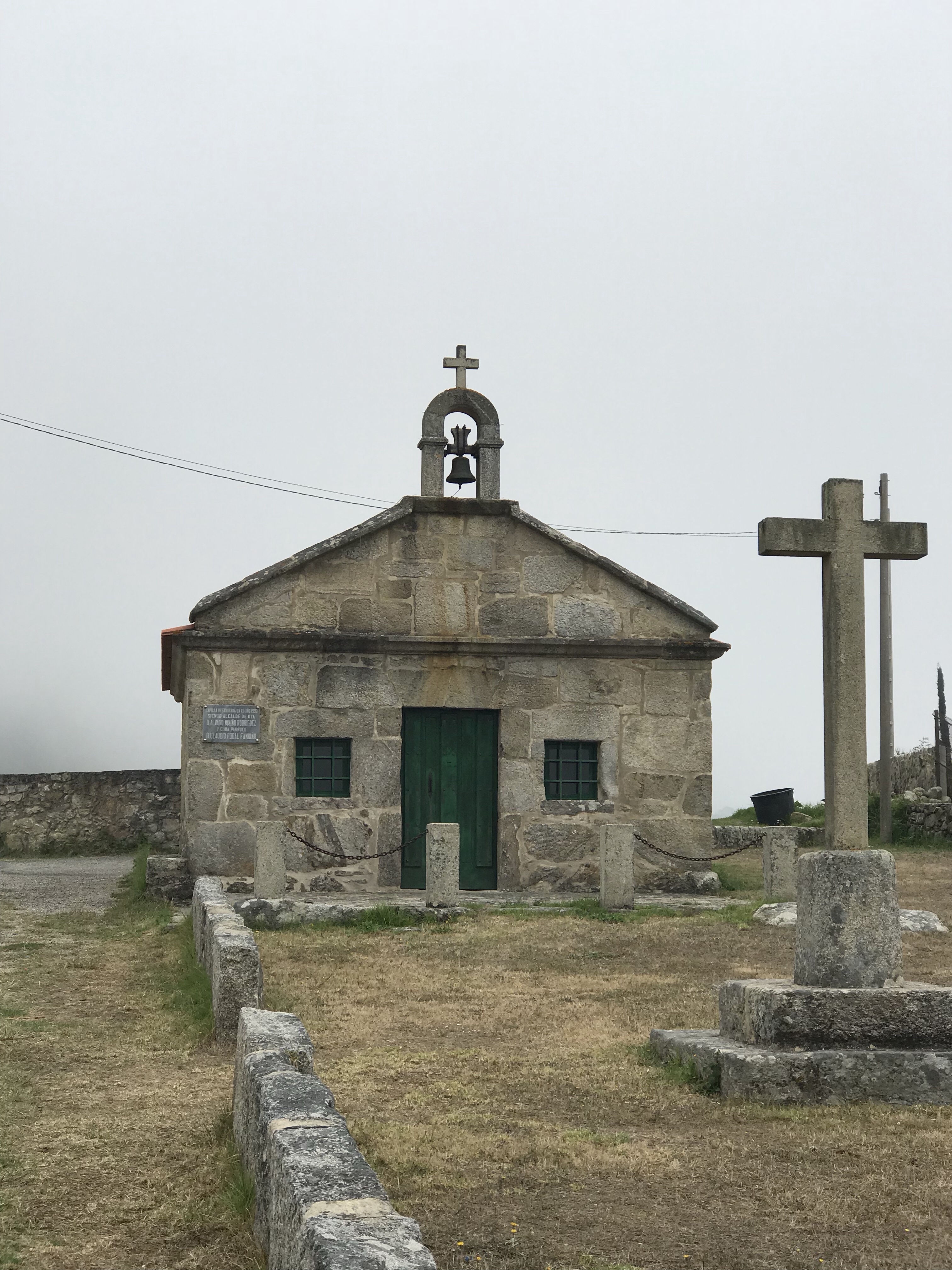 What a different walk it was on Thursday! We started out in A Guarda with the fog and ended the day 19 kms later in Villadesuso still in the fog. It made for a mystical walk along the coast. Started out along the water, but after that all the way till Oia the trail is either on a parallel path or bicycle path next to the road so the sound of the ocean was masked and the fog showed us only tantalizing hints of an ocean view. Loved the little town of Oia and the walk through fields to Villadesuso. We saw more pilgrims today and the way was very well marked with distance markers.