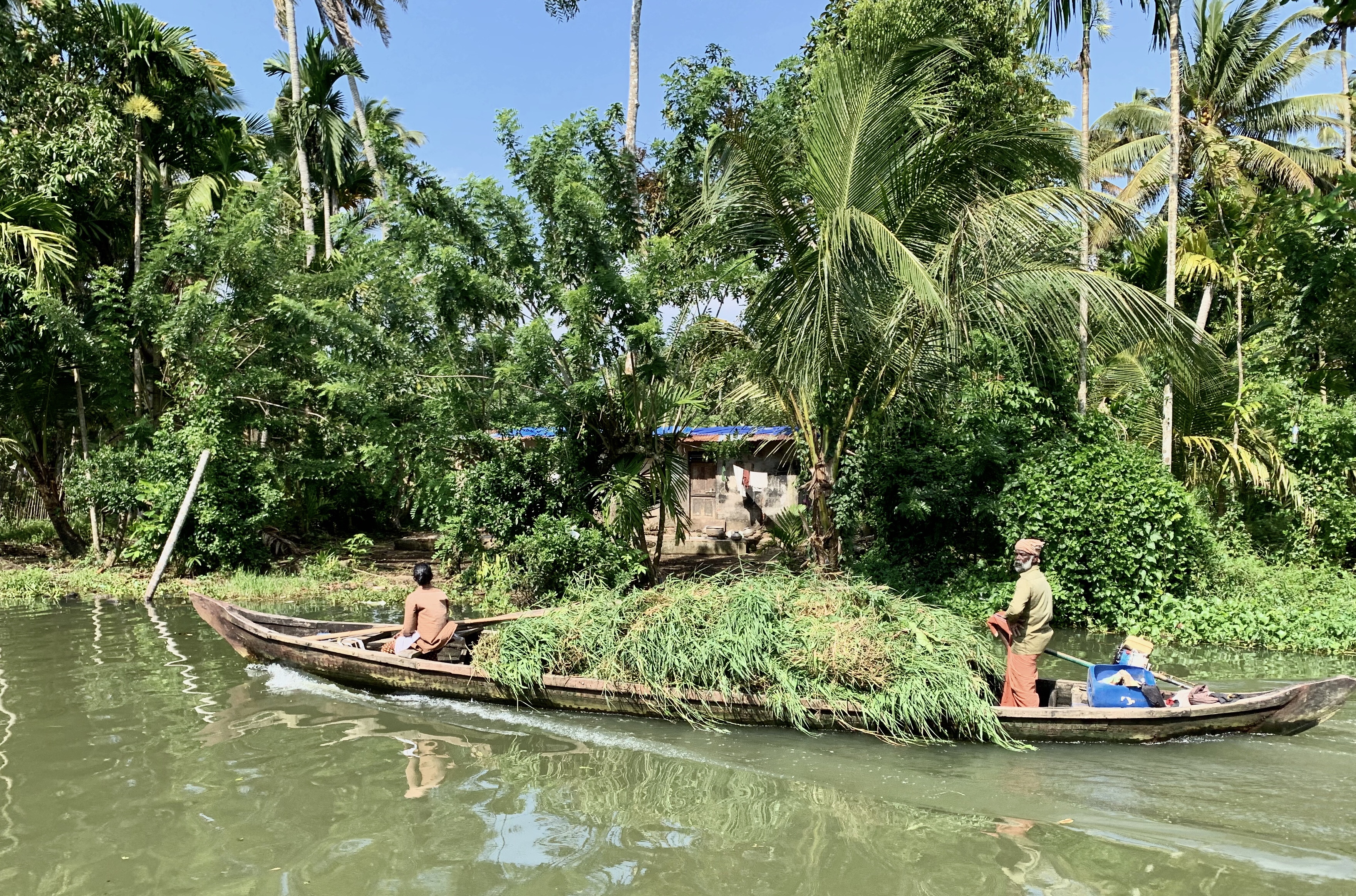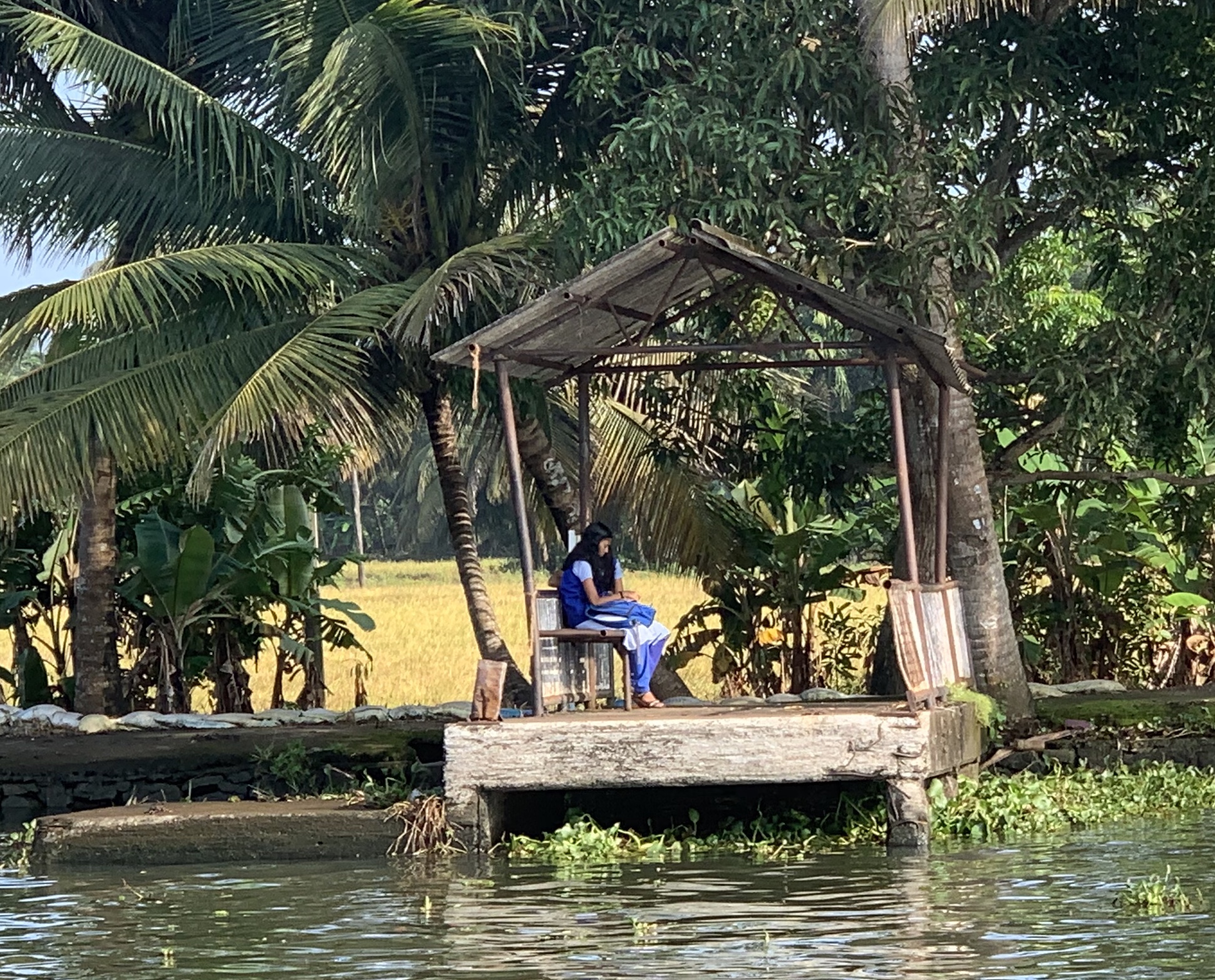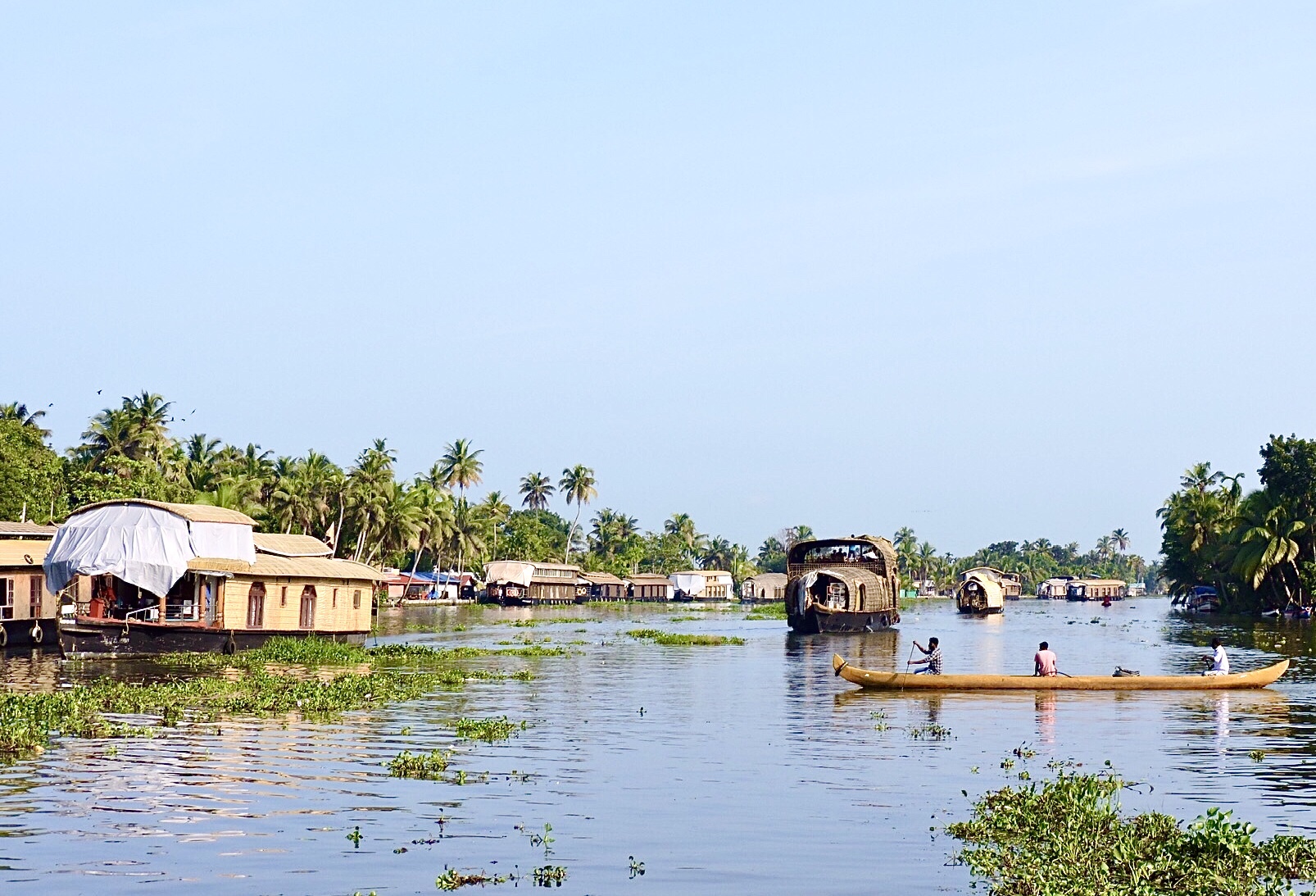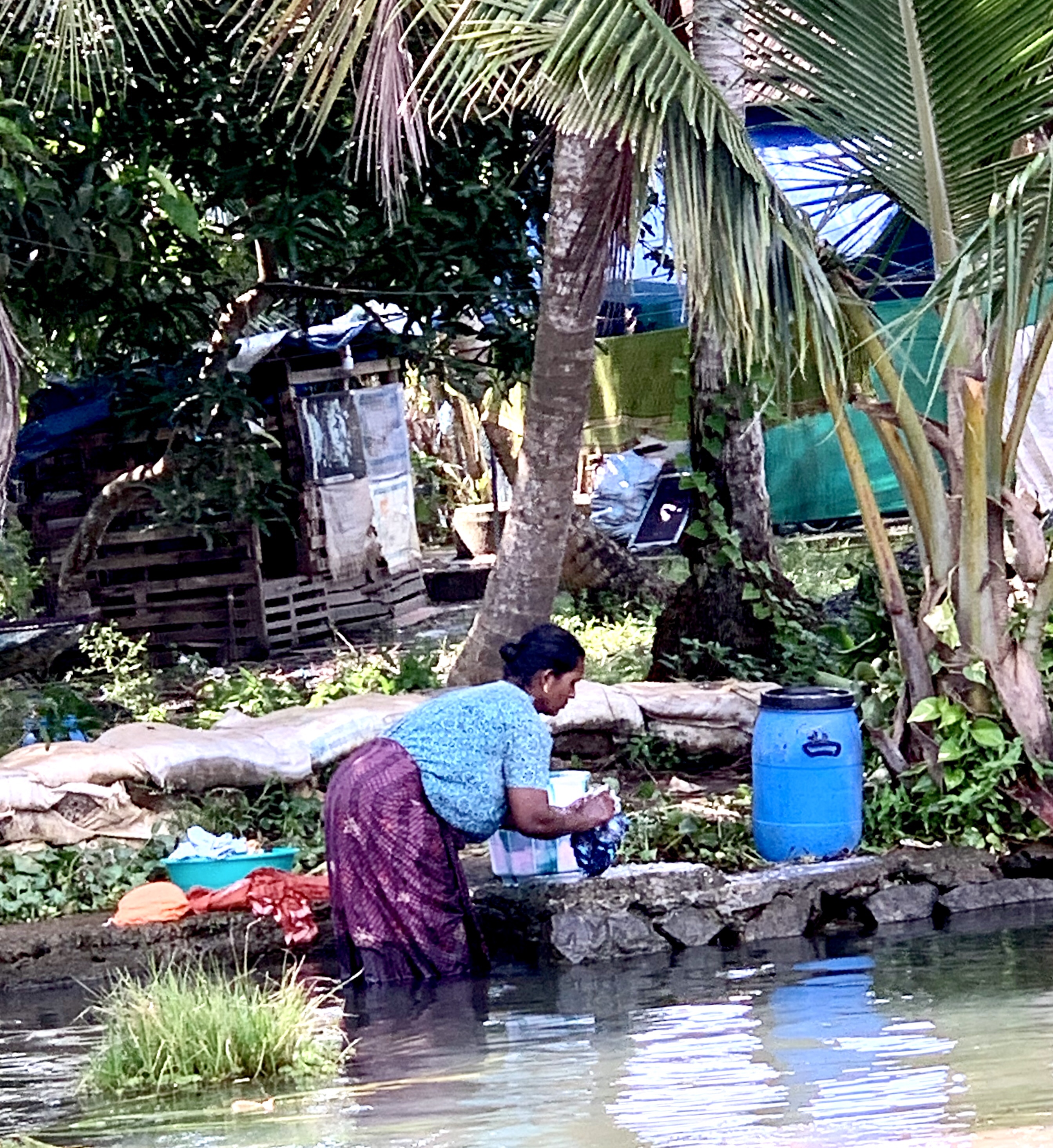One of the charms of the backwaters is the villages alongside the canals where locals go about their daily chores.