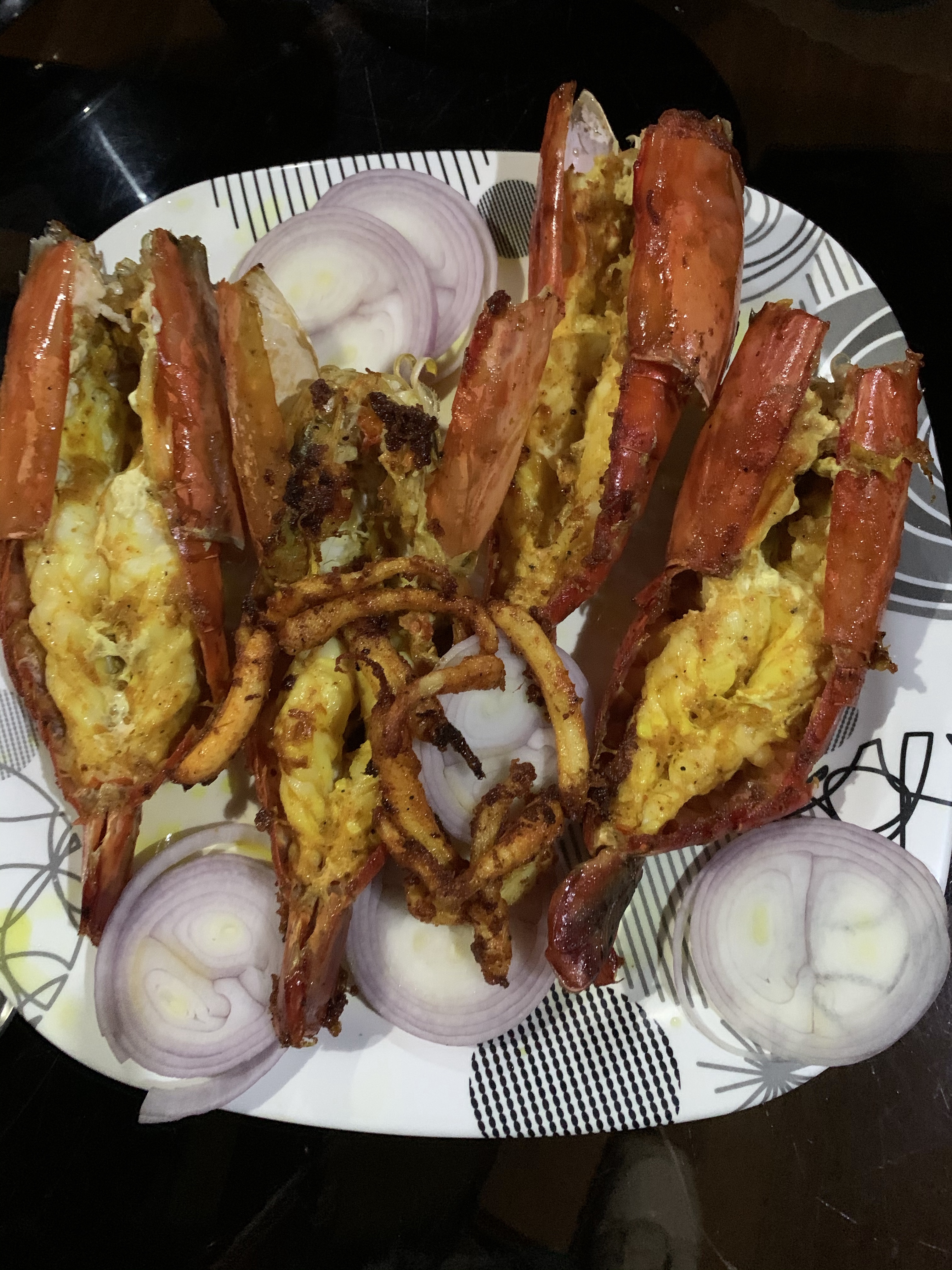 And how’s this for giant prawns? Lobster-like in their taste and consistency.