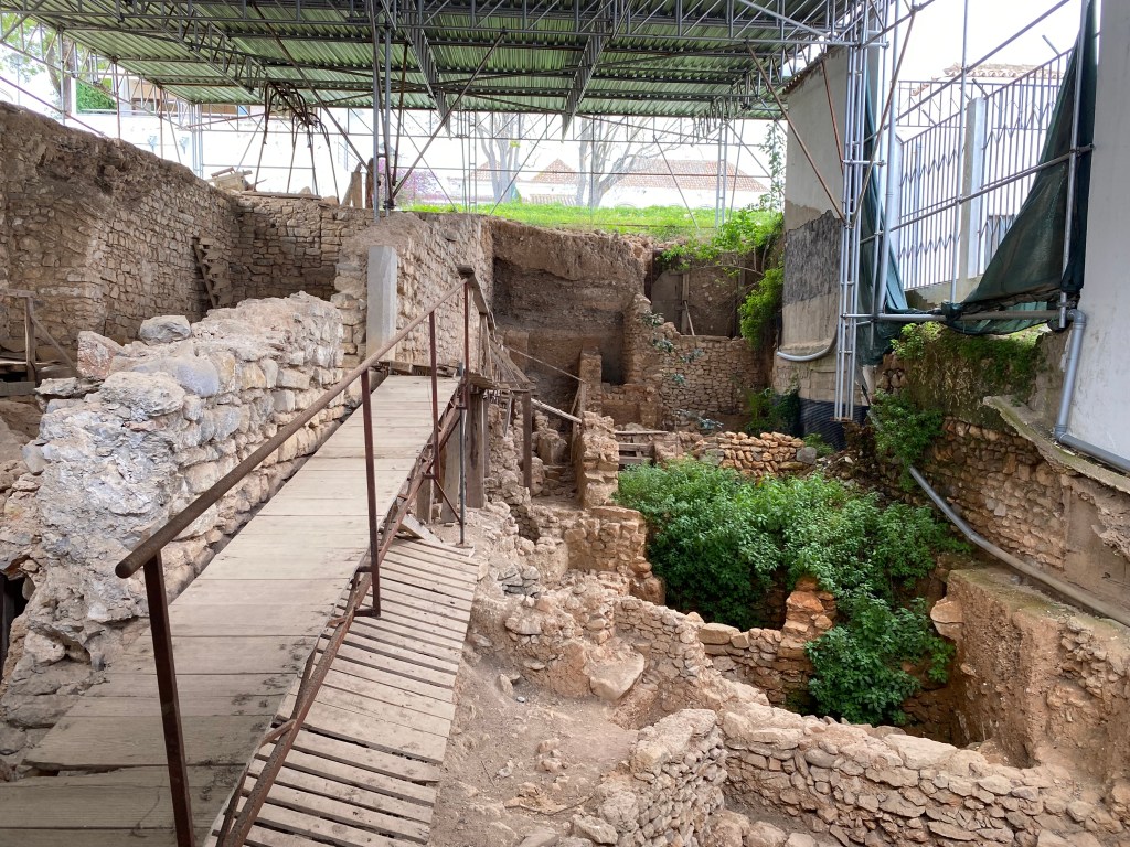 The view looked quite different back in the 8th century B.C., when the sea-going Phoenicians arrived here and built a trading post — Tavira’s first settlement for which we have archaeological evidence. To visit the Phoenician site, you cross the Praça da Republica, enter a narrow lane on the right called the Largo da Misericórdia, and then make a left on another lane than runs behind the A Muralha Hotel. There you’ll find what’s designated on Google Maps as “Ruínas Fenícias de Tavira.”