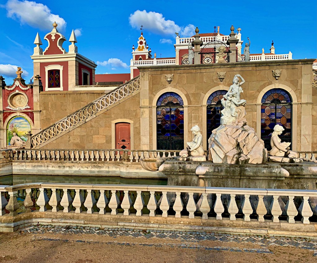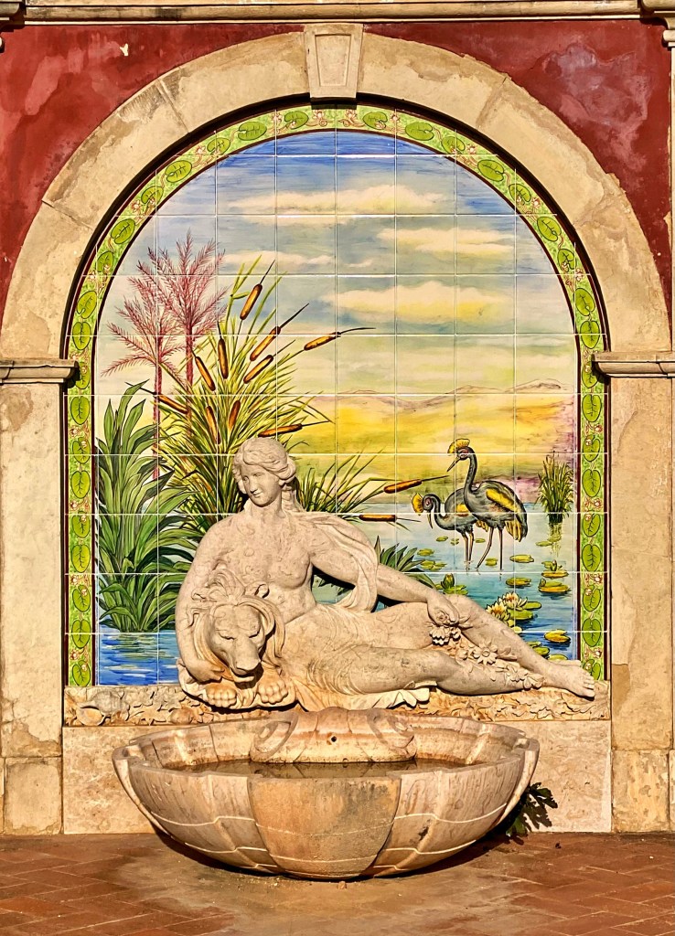 A visit to Estoi wouldn’t be complete without driving into the town center and visiting the Jardim do Palácio de Estói. We parked in a side street off the main square (centered on the Igreja Matriz de Estói) and walked up the hill to the garden. This was originally part of a 19th century estate. The manor house was converted into a hotel in 2009 and was off limits to tourists during Covid times. Part of the garden, however, remained open to the general public.