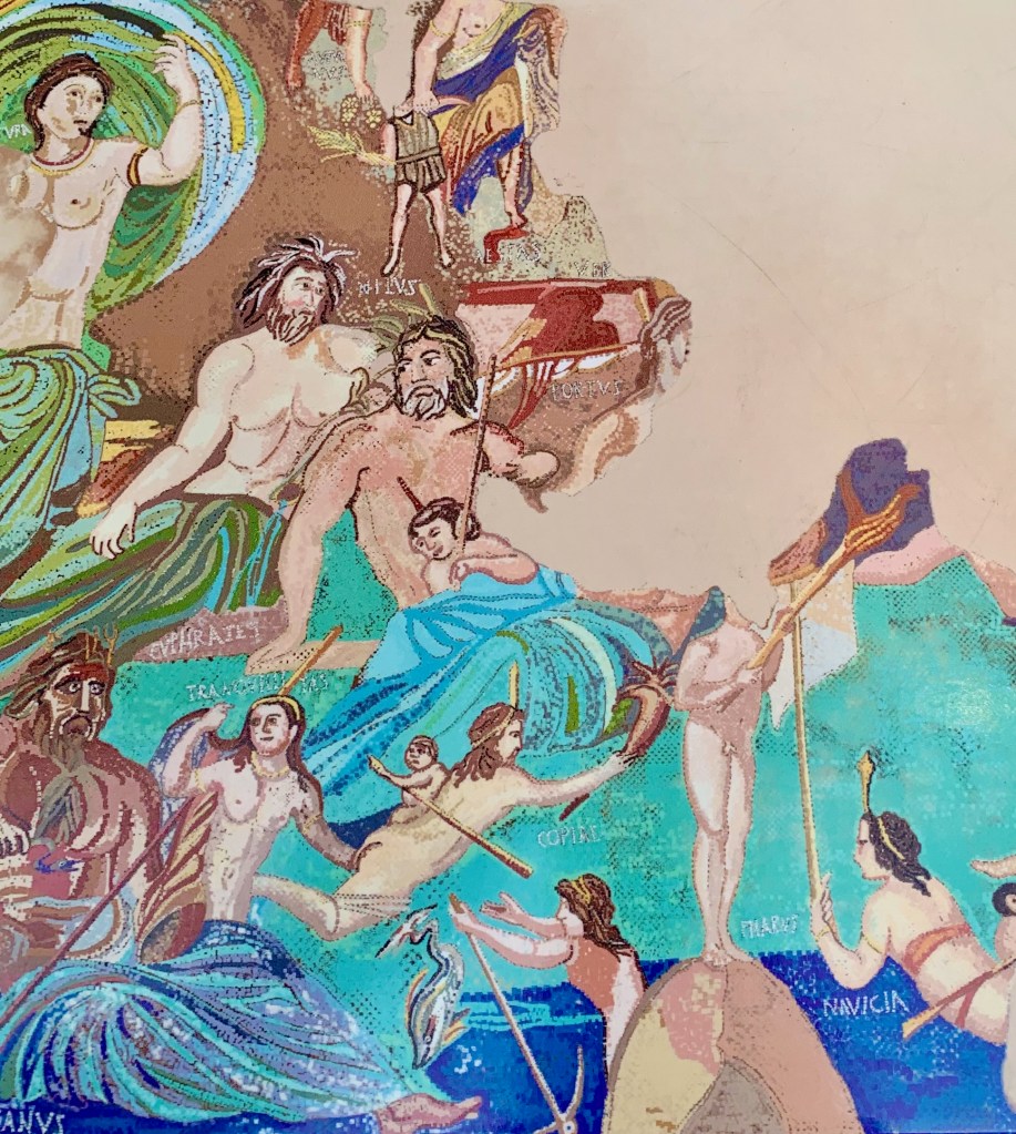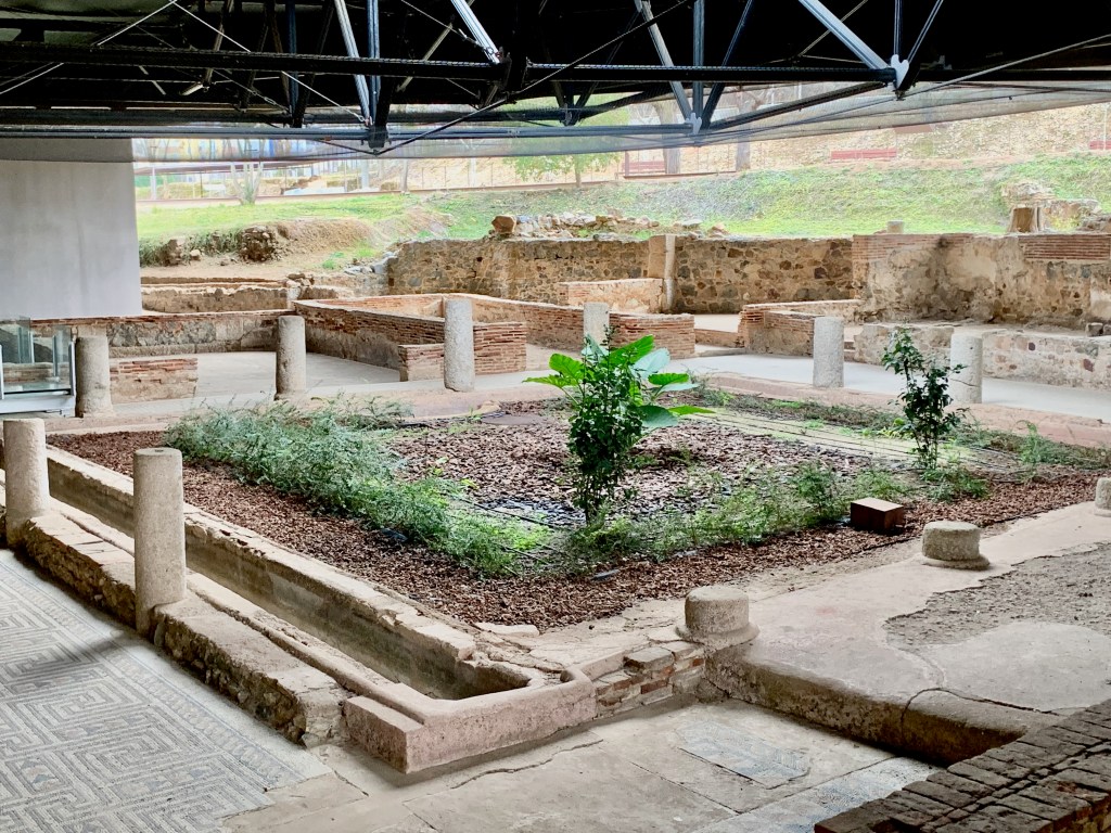 This aspect of Roman life is reinforced by another site, the “Casa del Mitreo,” which is located within its own gated park a 10-minute walk southwest of the ticket office, bordering the N-630 highway. This comprises another aristocratic villa with the characteristic interior garden framed by a peristyle walkway. It’s best known for the Cosmogonic mosaic discovered on one of its floors, an allegorical representation of the Roman myth of the origins of the cosmos.