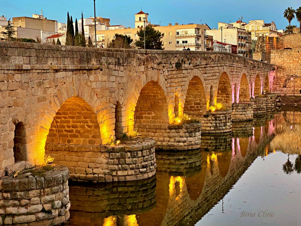 As you exit the Mitreo park, it might be worthwhile to cross the street and take a quick look at the municipal bullfighting ring. Posters and photos of prominent matadors from the last century are displayed in the arcade. Then, it’s a stroll to the northwest along Calle Oviedo to reach the Puente Romano (Roman Bridge) over the Guadiana.
