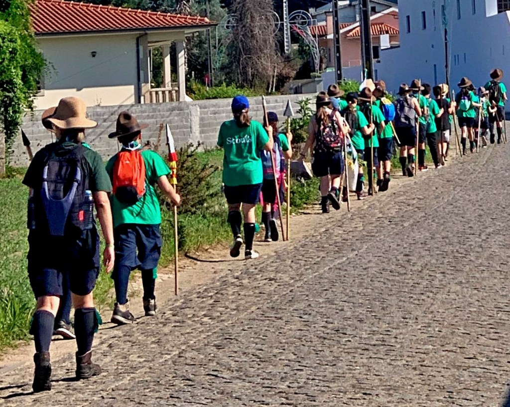 Despite its “forced march” qualities, the day’s walk began on an amusing note as we soon found ourselves following behind a scout troop of boys and girls marching along with fake spears. We assumed the spears had something to do with the religious festivals, but Google reports that neither St. Anthony nor St. John suffered martyrdom via spearing.