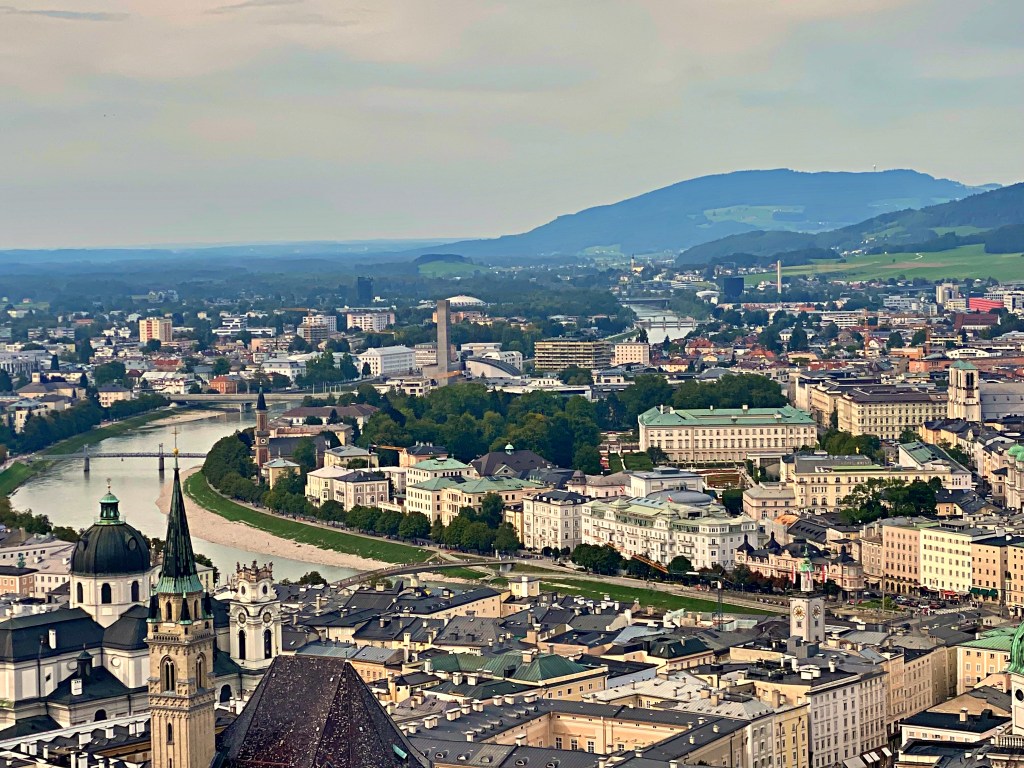 The name “Salzburg” is German for “salt castle,” which derives from the town’s role during the Middle Ages in protecting (and taxing) the salt barges passing by on the River Salzach. The town’s rulers built a fort on a mountain overlooking the river. Over the centuries, this expanded into the Hohensalzburg Fortress, one of the largest medieval castles in Europe.