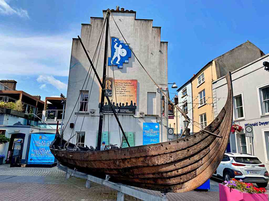 During our two days in Waterford, we discovered there’s more to see here than crystal. Waterford is the oldest city in Ireland, founded by the Vikings as a base for their marauding longboats in 914. A district downtown is still called the Viking Triangle and features a replica of one of those boats.