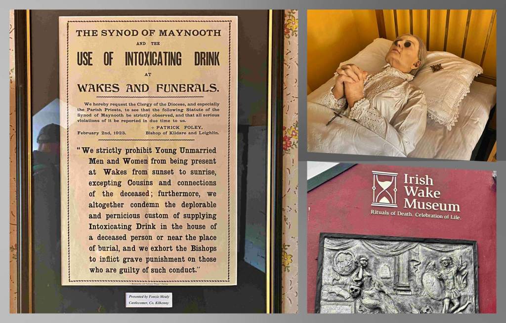 The Viking Triangle also includes a museum devoted to the Irish Wake, one of Ireland’s most famous customs. A half-hour guided tour through this small museum showed us how the Irish, since medieval times at least, have managed to combine the solemnity of mourning for the dead with abundant alcoholic comfort for the living. The wake is less practiced today, particularly in urban areas.