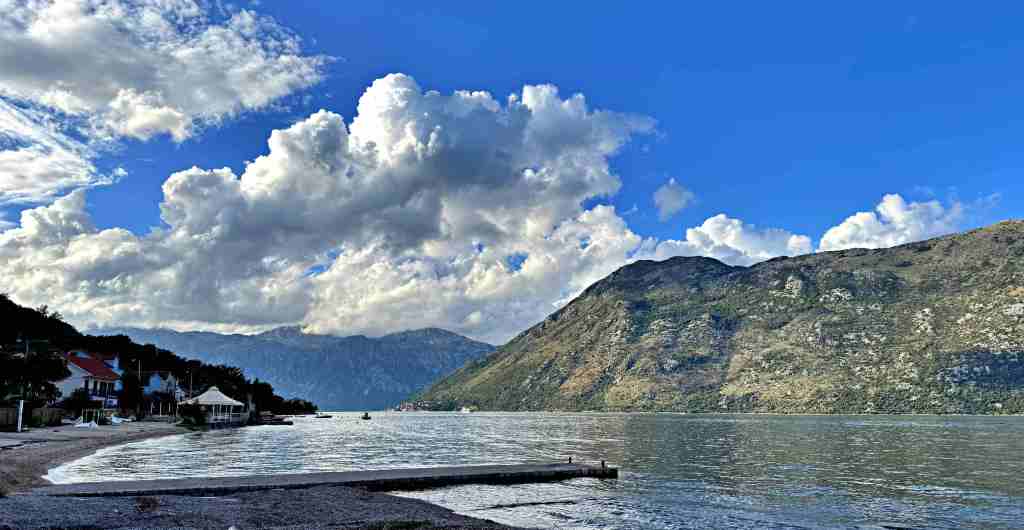 Montenegro, thankfully, seems to have put these ethnic conflicts aside for now — at least in the Kotor Bay area, which emerged as tourist mecca in the 2000s and is now booming with new construction. No wonder, when you see the scenery: a 28 km (17 mi)-long bay bounded by towering bleak mountains that change colour throughout the daily arc of the sun. The apartment we rented, in the village of Prčaju, gave us a balcony-wide view of the cruise ships gliding in each day.