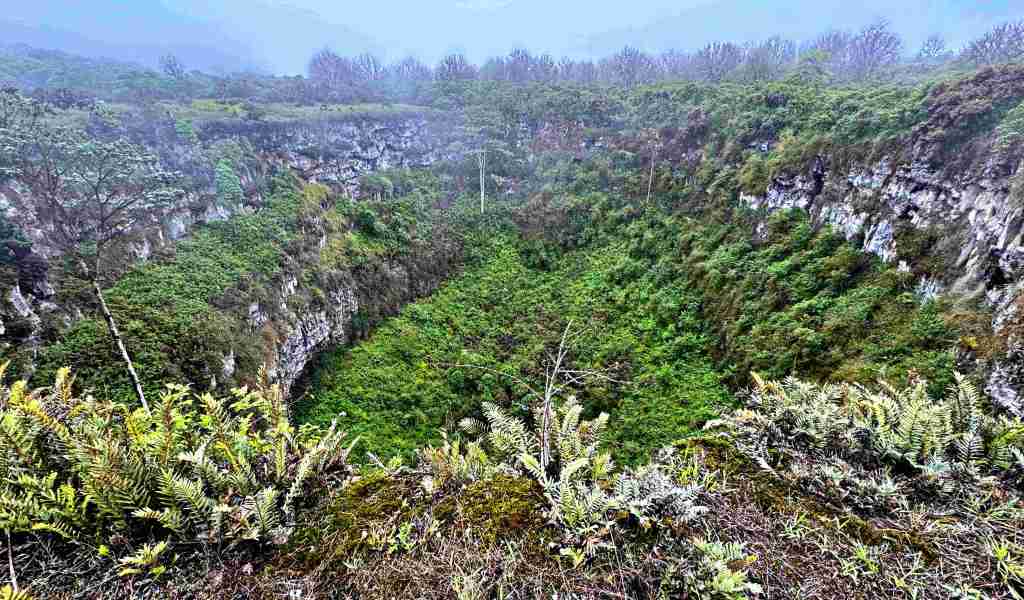 To get the most out of this drive as possible, we had hired a driver/guide named Wilson, who took us to some scenic highland locations along the way. Two calderas, known as Los Gemeles (the Twins), provided our first stop. Like Junco Lagoon on San Cristóbal, these are large depressions in a foggy rainforest, just no Frigatebirds swooshing about, since the holes are dry.
