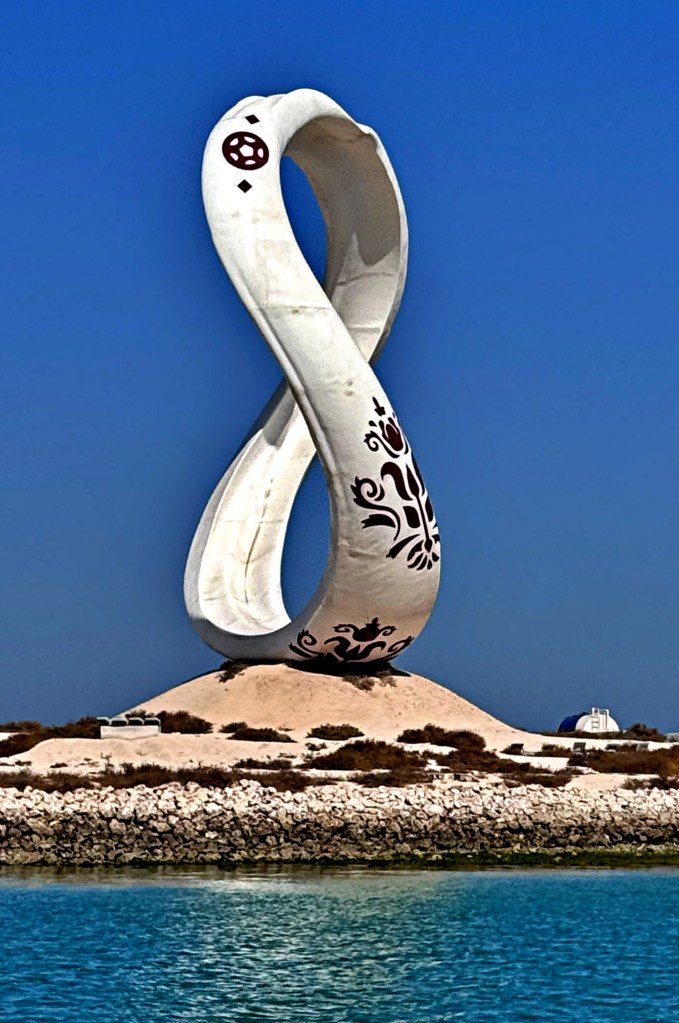 Our tour around the bay also took us past the FIFA World Cup 2022 monument, a 26.5 meter sculpture located on a small island in the harbour. Qataris are still proud of their moment in the international spotlight, despite the cultural controversies that accompanied the games.
