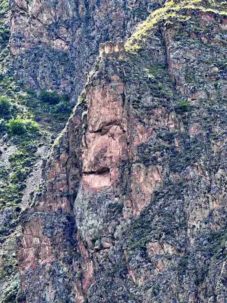 One odd sight from the citadel is what seems to be a carving of the face of a bearded man on a nearby mountain. Tourist guides, including our Abraham, like to tell visitors that this represents the main Inca god known as Wiracocha. Later research on Google revealed, however, that this interpretation comes from a popular book about Inca spirituality published in the 1990s rather than current scholarly opinion.