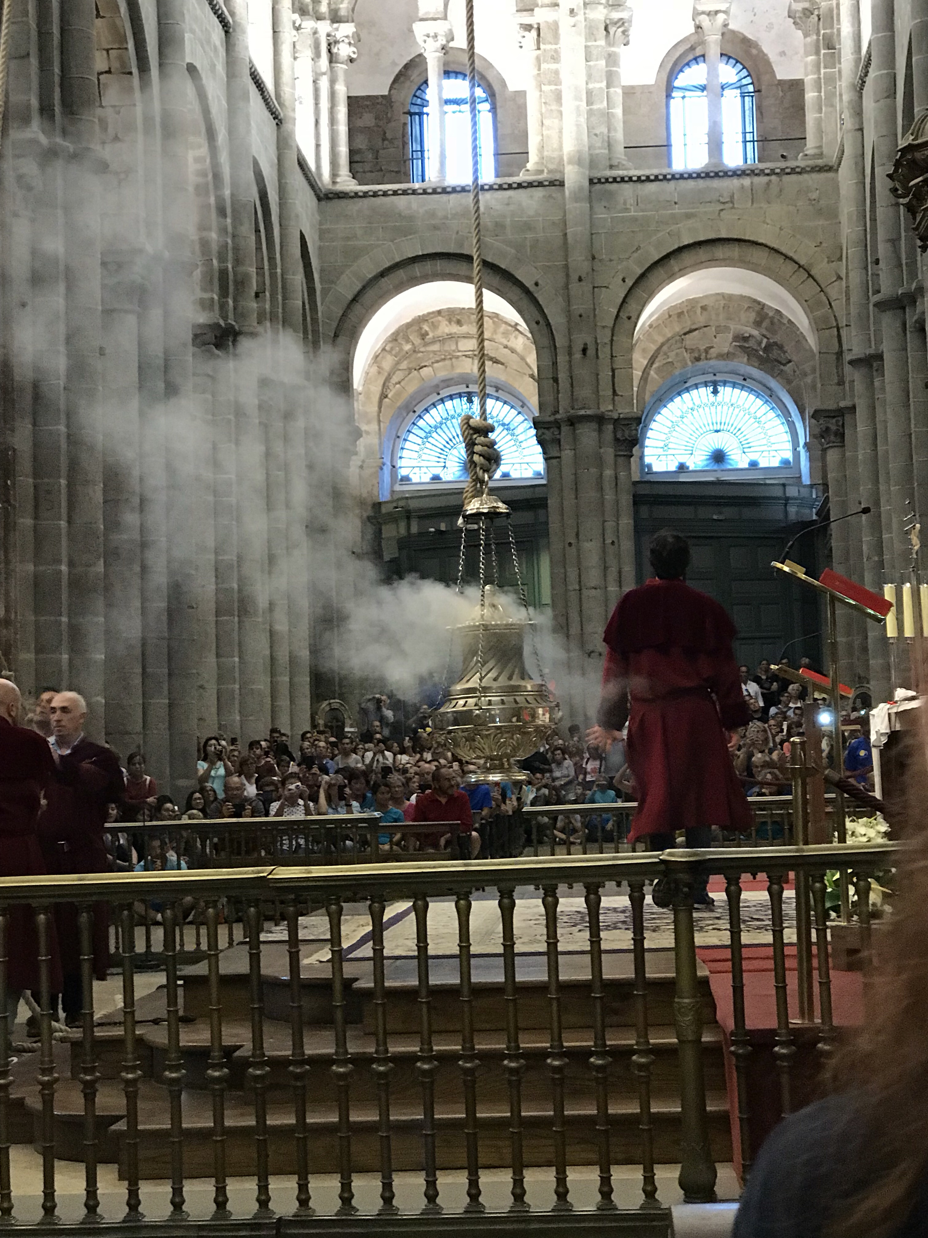 And we attended mass again at 7:30pm that evening so we could see the botafumeiro (a thurible or incense burner) swing. Seeing the botafumeiro fly through the Santiago Cathedral was a highlight of our spiritual journey on the Camino.