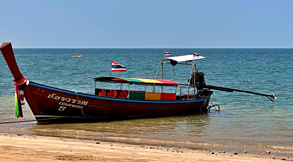 We chose Koh Jum Island, one of the quieter coastal tourist spots, which is just offshore from Krabi. Some friends had kindly recommended a hotel there, the Wynn Kohjum, which proved ideal. Getting there requires a 20-minute taxi ride from Krabi airport to the coast, then transfer to a motorized “long boat” for the half-hour trip to a pier in Koh Jum, where you can take a tuk tuk to your lodging.